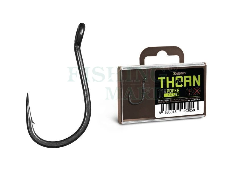 THORN Poper to specyficzny haczyk przez wygięte na zewnątrz oczko. Taka konstrukcja predestynuje go przede wszystkim do stosowania z przynętami typu pop-up. Doskonale nadaje się do tworzenia zestawów, takich jak Chod rig, Multi rig, Zig rig i tym podobne. Dzięki lekkiej wewnętrznej krzywiźnie idealnie wpasowuje się w pysk karpia po uderzeniu.