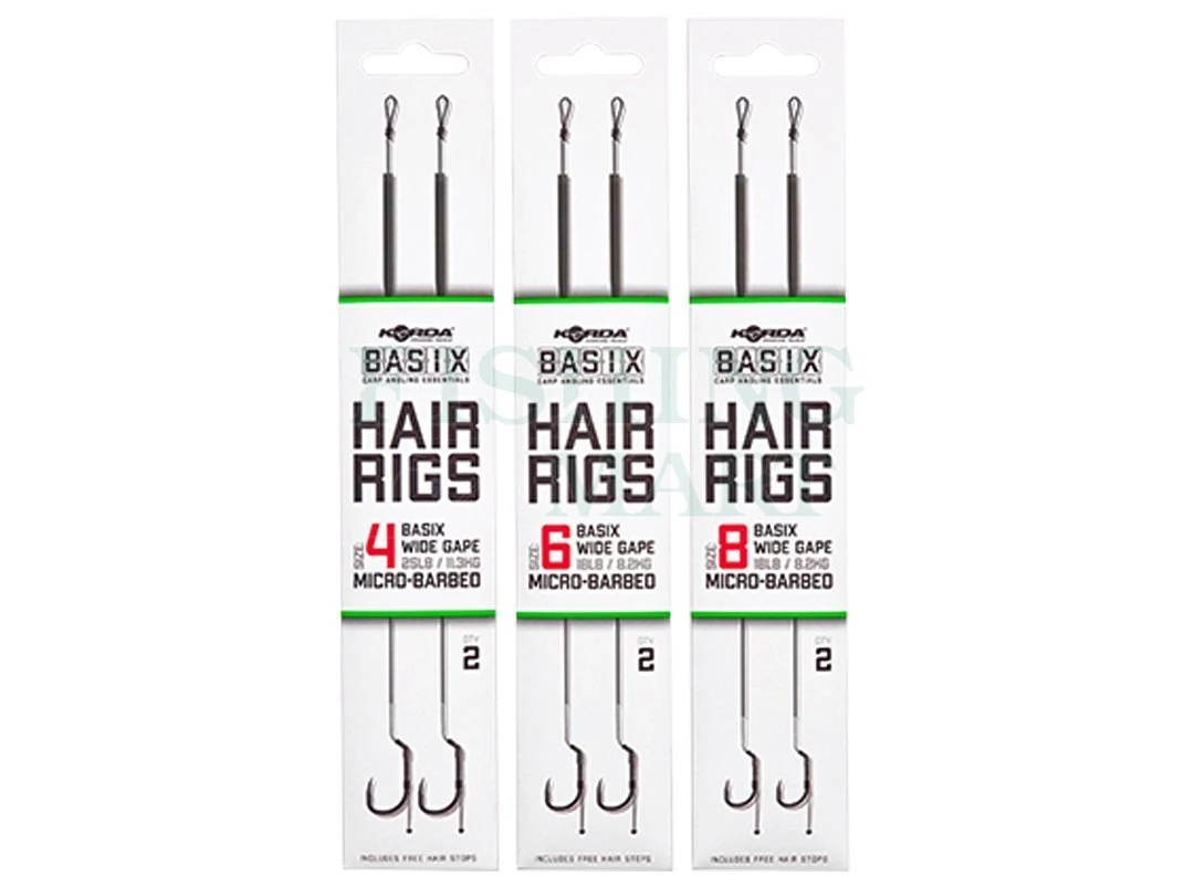 | Wybór | Korda Basix Hair Rigs Wide Gape Micro-Barbed #6 18lb 2pcs, Korda Basix Hair Rigs Wide Gape Micro-Barbed #8 18lb 2pcs |