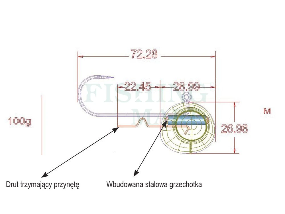 Drut mocujący przynętę doskonale utrzymuje ją na miejscu bez potrzeby stosowania kleju.