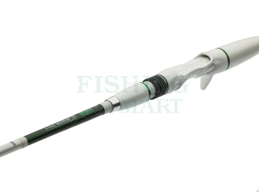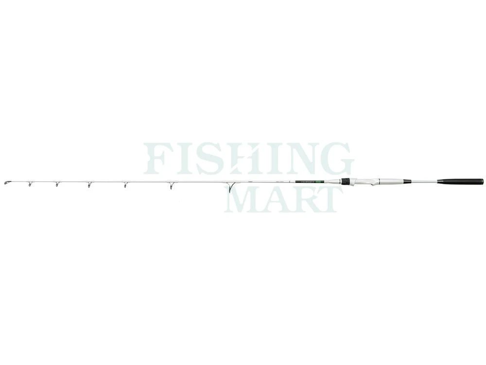 Blank tej wędki sumowej Madcat został specjalnie zaprojektowany do wędkowania wertykalnego. Gorąco wierzymy, że wędki sumowe Madcat White X-TAAZ Vertical Ext. 170 okaże się najprawdopodobniej najbardziej niezwykłą wędką, jaką do tej pory zaprojektowano w MADCAT. Kluczową cechą kija jest regulowana długość dolnika! Kilka krótkich obrotów w kierunku przeciwnym do ruchu wskazówek zegara umożliwiają wędkarzowi jego wydłużenie. Aby go ponownie zablokować, na żądanej długości, należy ponownie skręcić zgodnie z ruchem wskazówek zegara. Zaleta takiego rozwiązania jest wręcz ogromna: podczas wędkowania wertykalnego krótki dolnik pozwala na maksymalną swobodę ruchów, zaś podczas walki zwiększona długość zapewnia większą dźwignię i jedocześnie więcej mocy przy znacznie mniejszym wkładzie siłowym. Wykonane z węgla 30T Toray, wyposażone w oryginalny uchwyt Fuji DPS-H oraz przelotki SeaGudie.